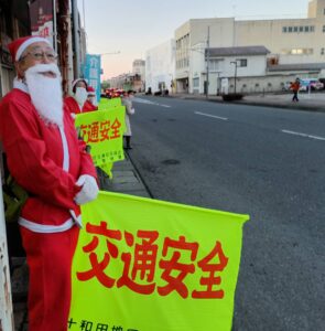 令和7年12月10日(水)15時45分より地域交流センター「とわふる」においてサンタでトワイライト歩行者守ろう大作戦in Towada’25が実施され、十和田市町内会連合会(交通安全福祉部会)と十和田市交通安全母の会が参加しました。