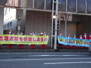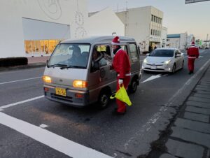 十和田警察署長をはじめ、サンタ姿の参加者が笑顔で活動を行い、ドライバーの皆さまにもうなずいていただくなど、交通安全への理解が感じられる場面が見られました。