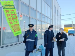 ご来店の皆様へ特殊詐欺への注意喚起を呼び掛けながら、